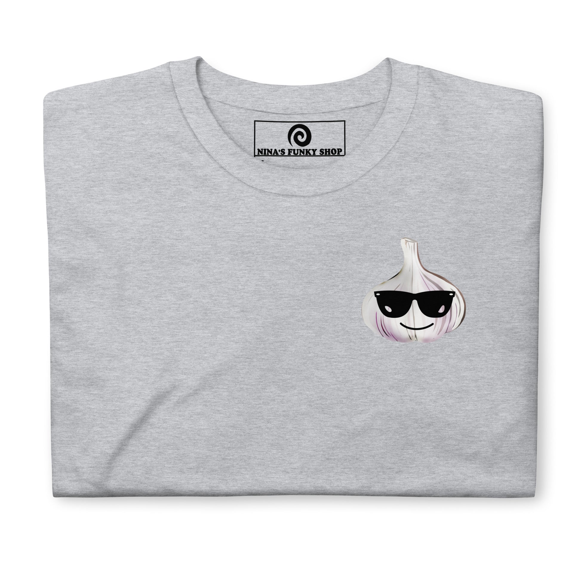 Our Cool Garlic T-Shirt is soft, comfortable and expertly printed just for you. It's a classic cotton tee with a funny garlic design. The perfect tee for garlic lovers and beyond.
