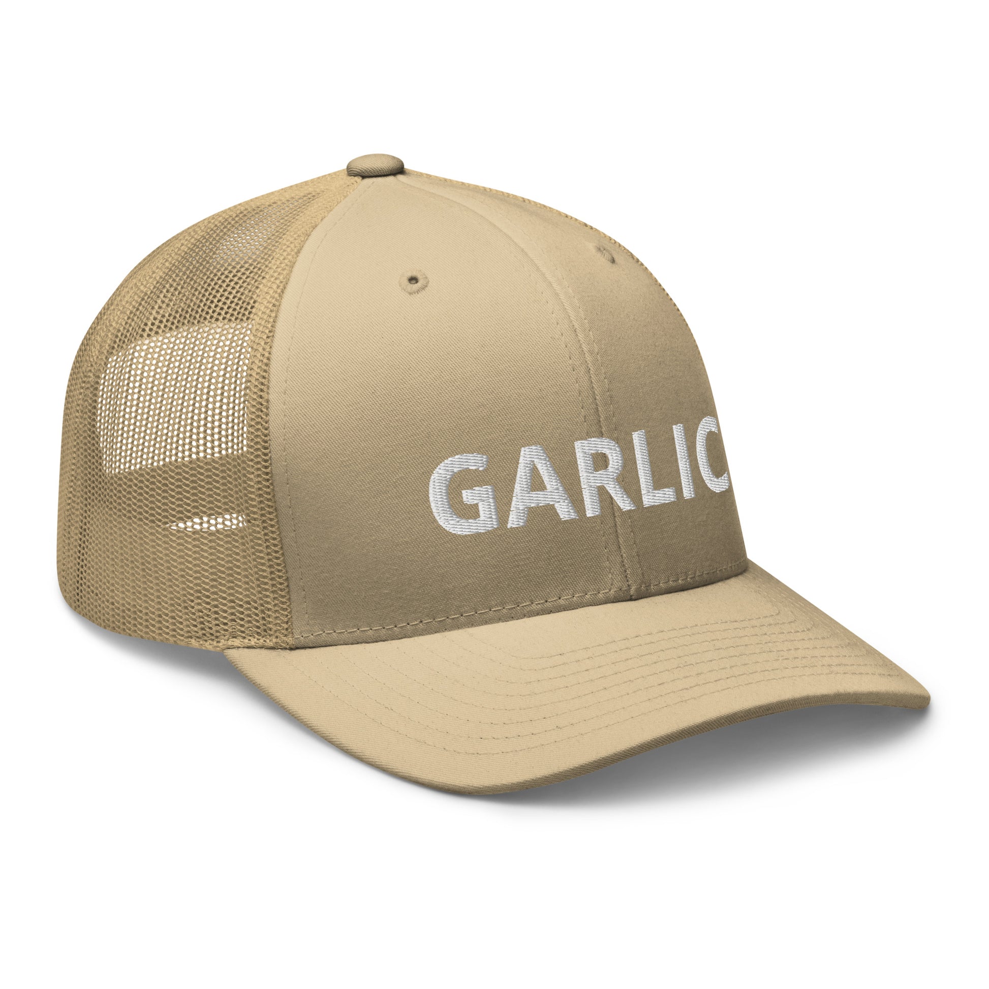 Love garlic? Looking for a fun gift for a garlic lover? This Garlic Trucker Hat is just what you need. It's comfortable, comes in a variety of colors and has a convenient adjustable closure. Celebrate your favorite foods in our Garlic hat. It's expertly embroidered and made just for you.