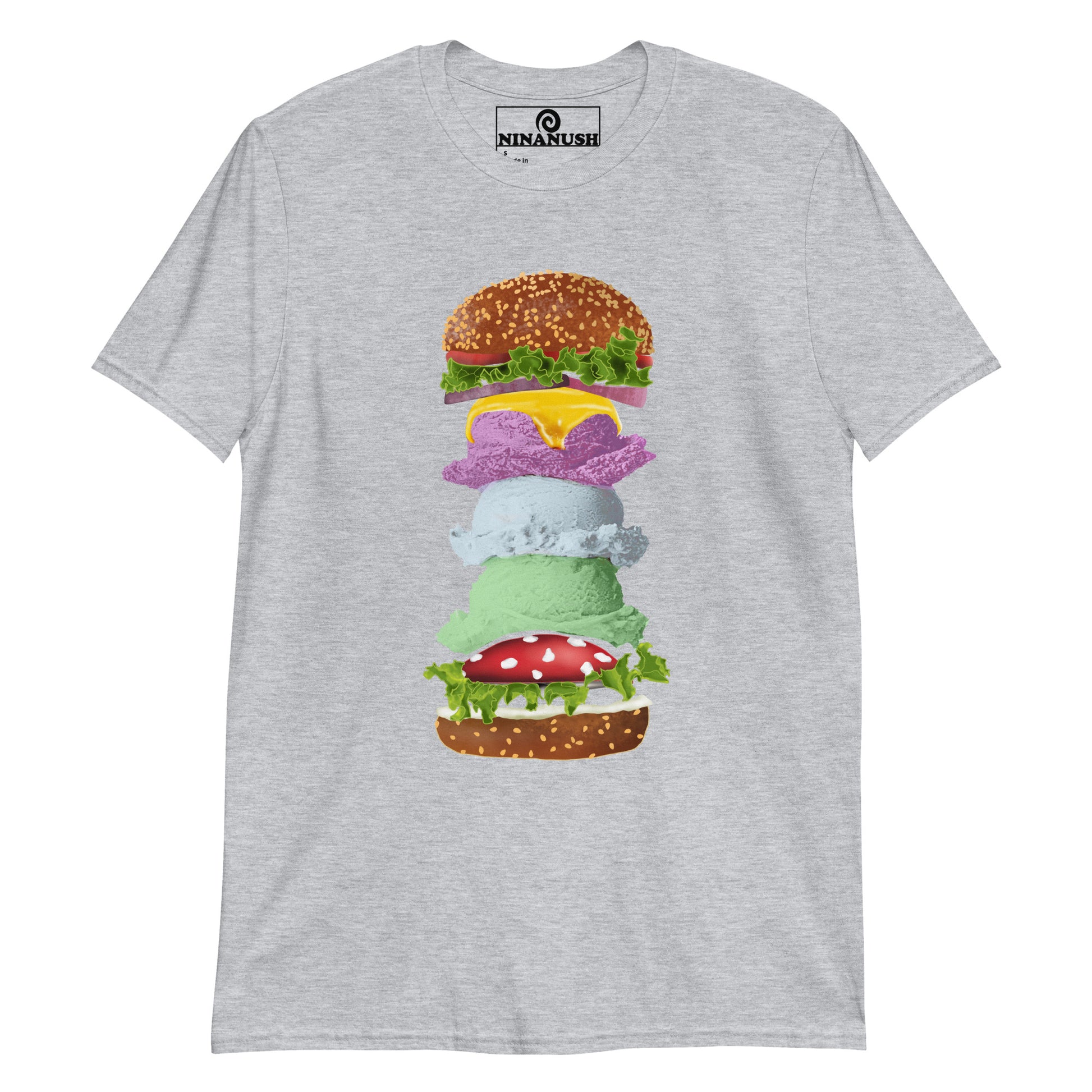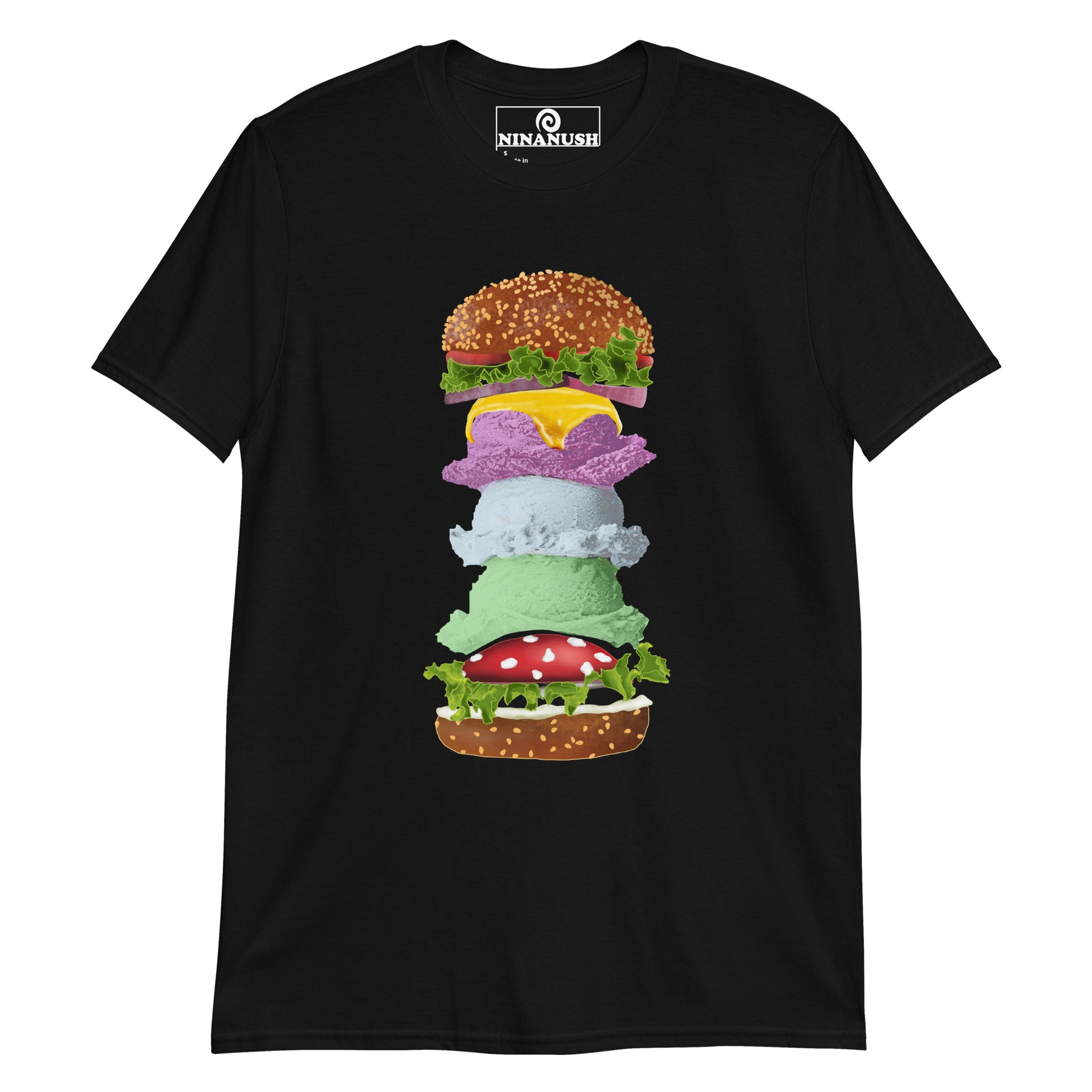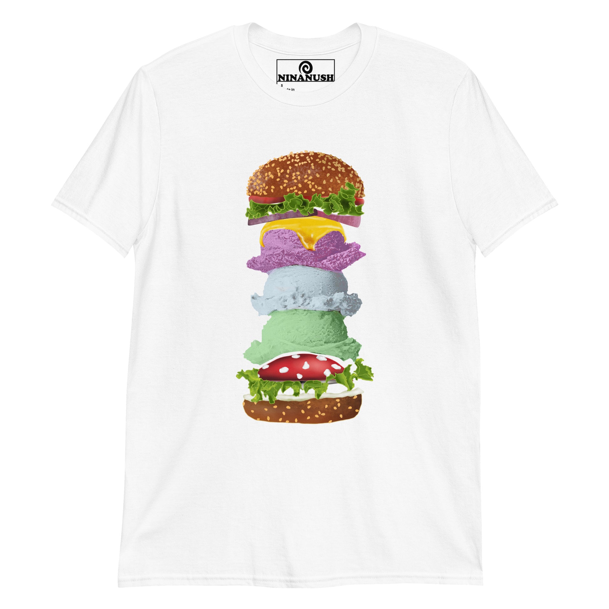 This funky mushroom and ice cream burger t-shirt is comfortable, totally unique and made just for you.