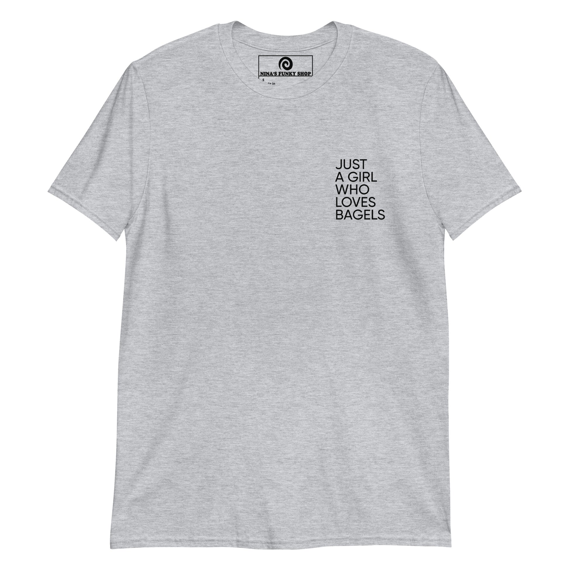 Bagel enthusiast? Looking for a funny gift for a bagel lover? This Bagel Girl T-shirt is just what you need. It's soft and comfortable with a bagel design, expertly printed on the front. The perfect shirt for everyday bagel babes and foodies of all kinds. Designed by Nina and made just for you.