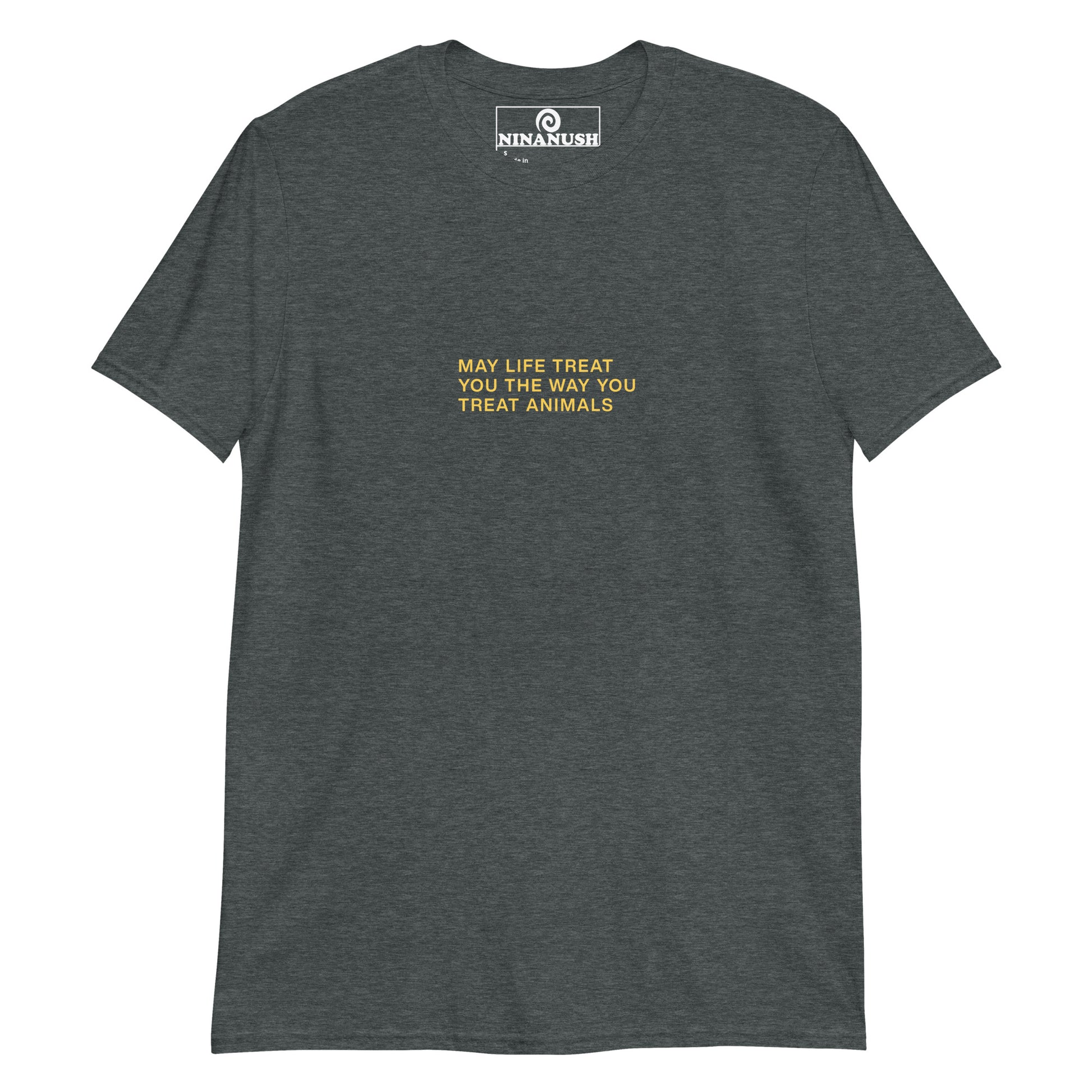 Stand out in this ethical vegan t-shirt with a meaningful saying about being kind to animals. It's a soft and comfortable cotton tee designed for animal activists and animal lovers of all kinds. Wear it as an everyday statement tee or give it as a gift for an animal activist.