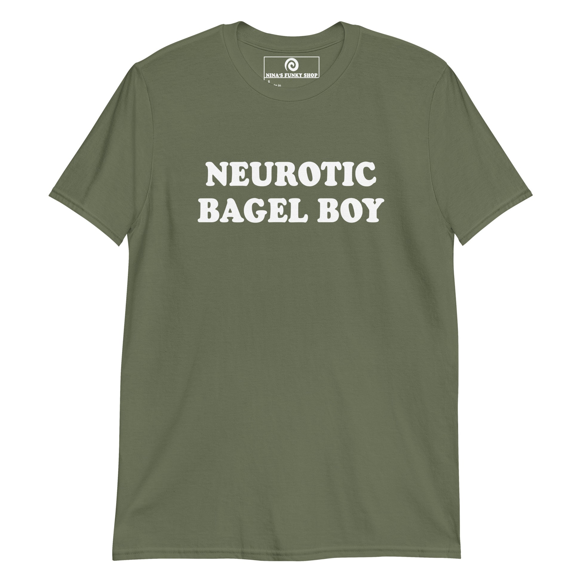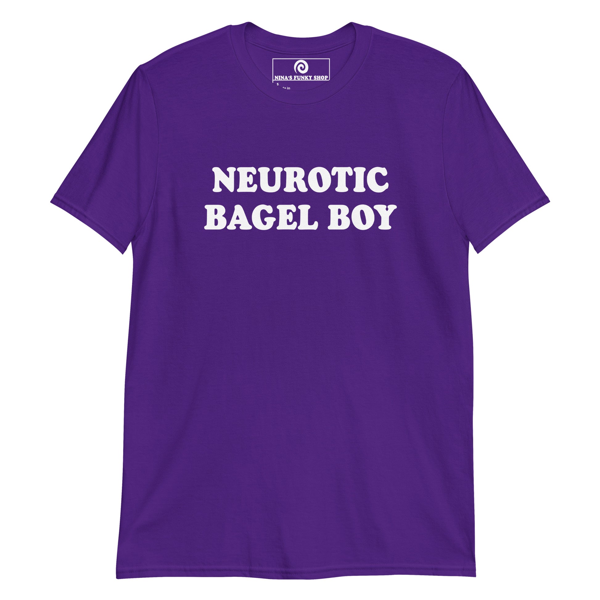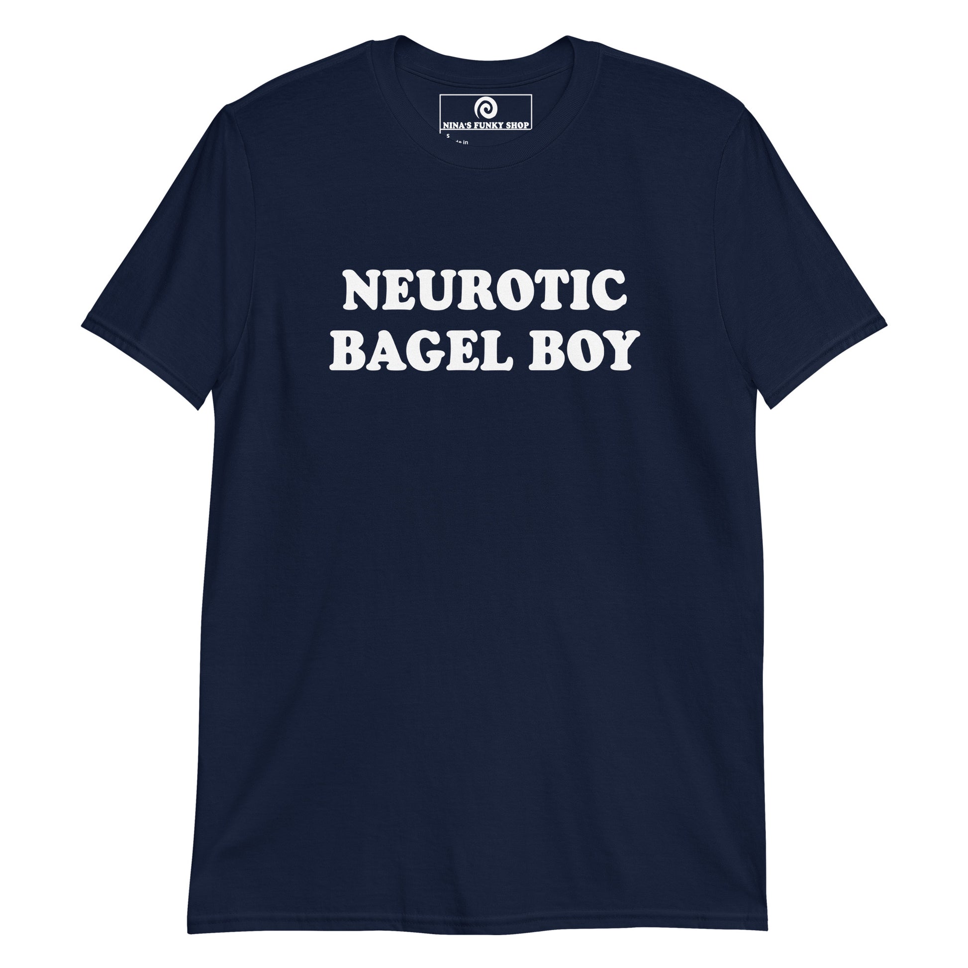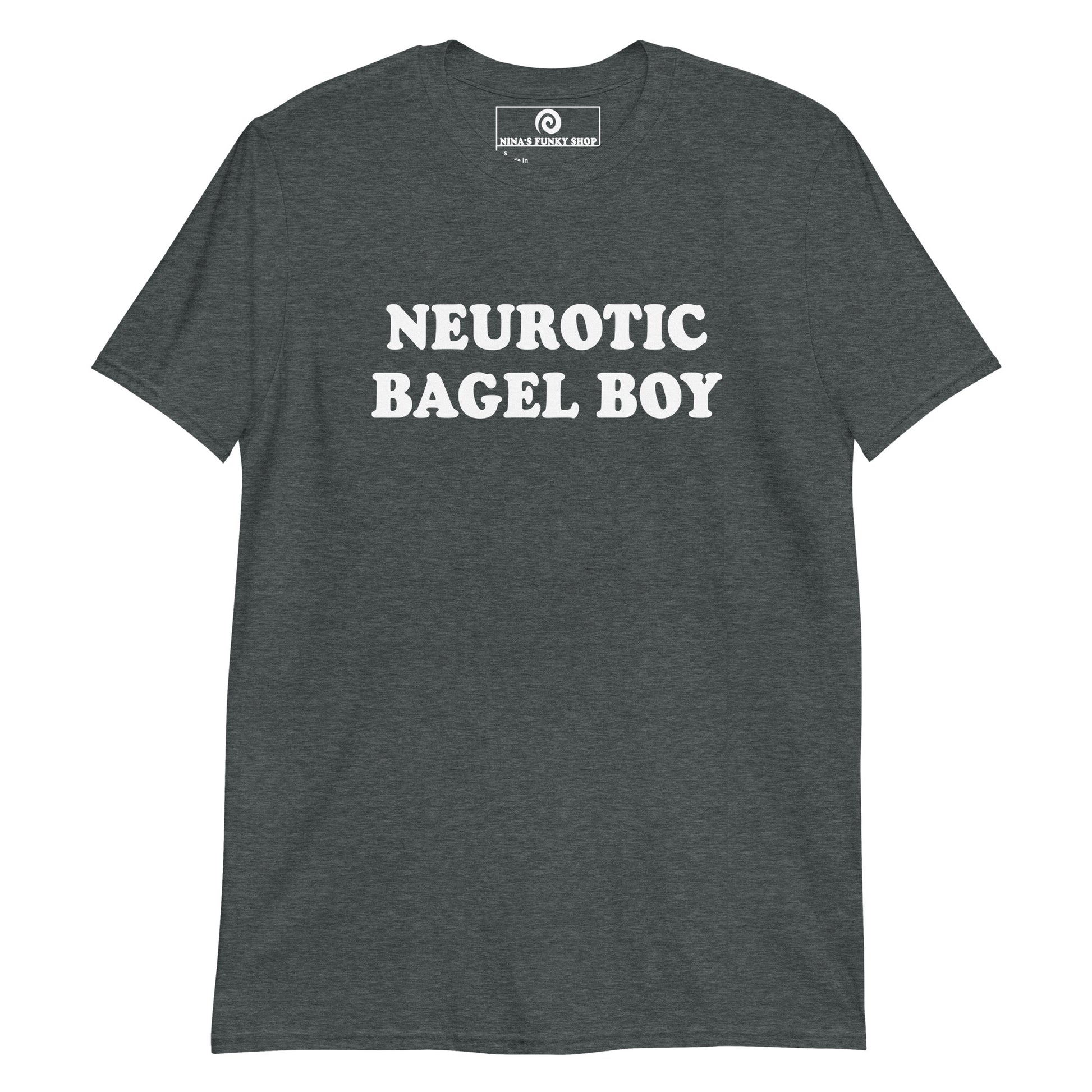Our Neurotic Bagel Boy T-Shirt is soft, comfortable, and made just for you. It's a funny t-shirt for bagel enthusiasts and foodies of all kinds. Wear it as everyday streetwear or give it as a gift for a neurotic bagel lover.