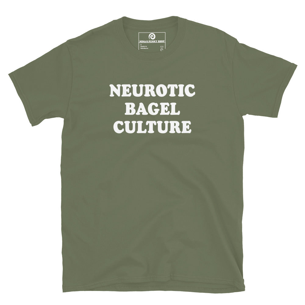 Our Neurotic Bagel Culture T-Shirt is soft, comfortable, and made just for you. It's a funny bagel t-shirt with a sarcastic saying, expertly printed on the front. The perfect funny Bagel Shirt for New Yorkers, bagel enthusiasts and foodies of all kinds.